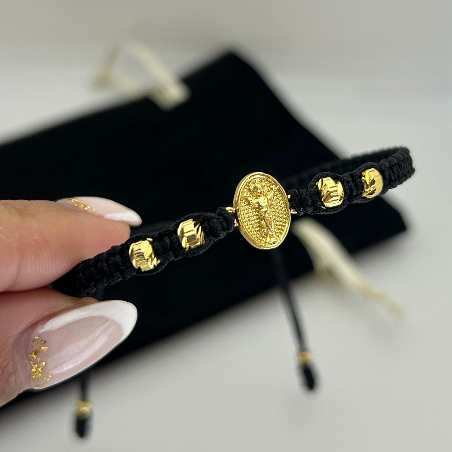 ✨Pulsera ajustable en hilo negro trenzado, con detalles en oro laminado de 18k y medalla central del Divino Niño de Roma 🙏. Un accesorio que combina fe, protección y estilo, ideal para llevar en el día a día.