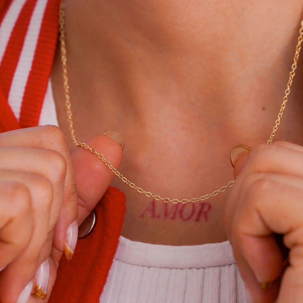 La cadena C Aros de 1.8 mm y 45 cm en oro laminado de 18K combina sencillez y elegancia en un diseño tradicional de eslabones circulares. Su tamaño la hace versátil y cómoda para uso diario, además de ser la base perfecta para realzar dijes pequeños y delicados.