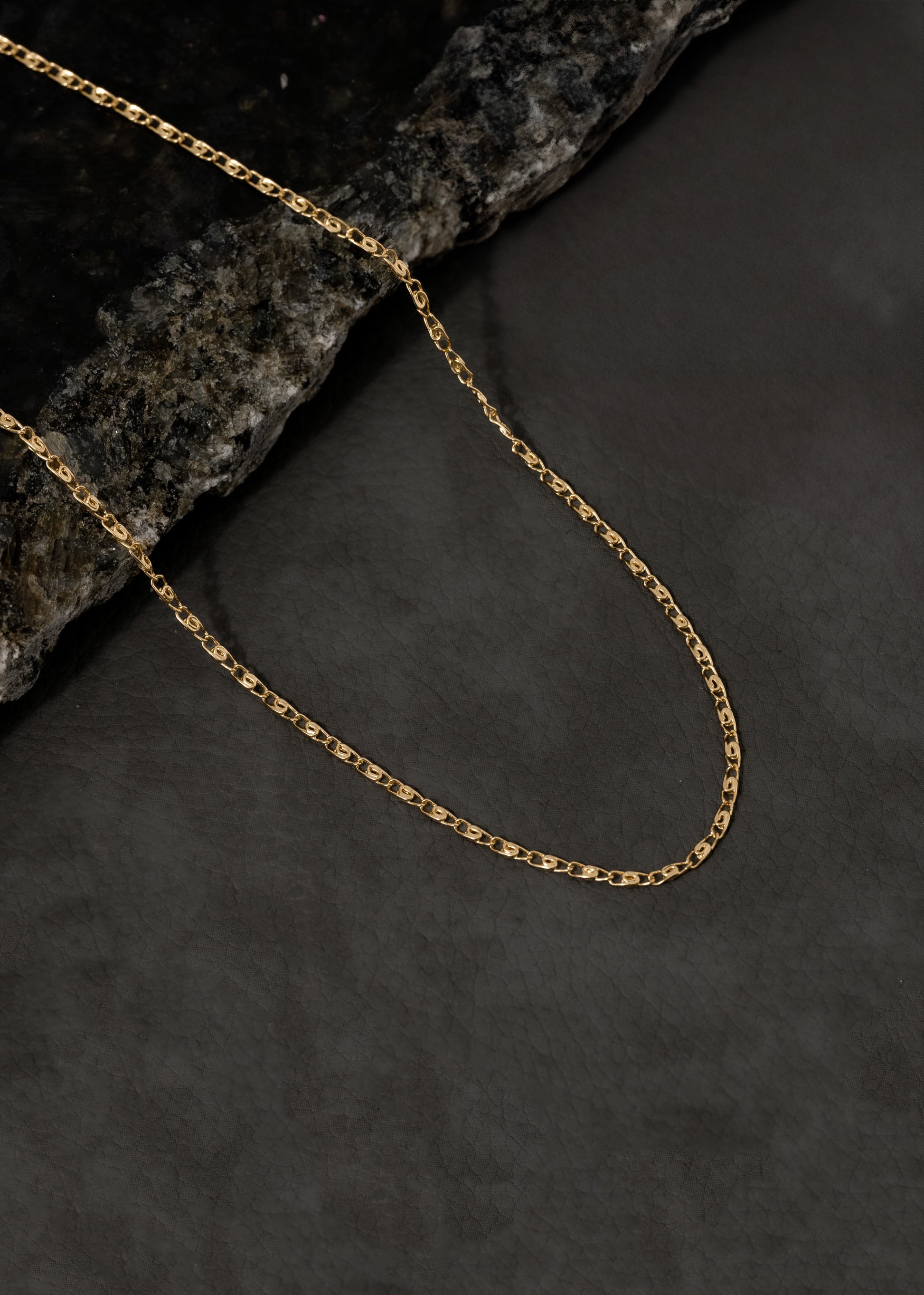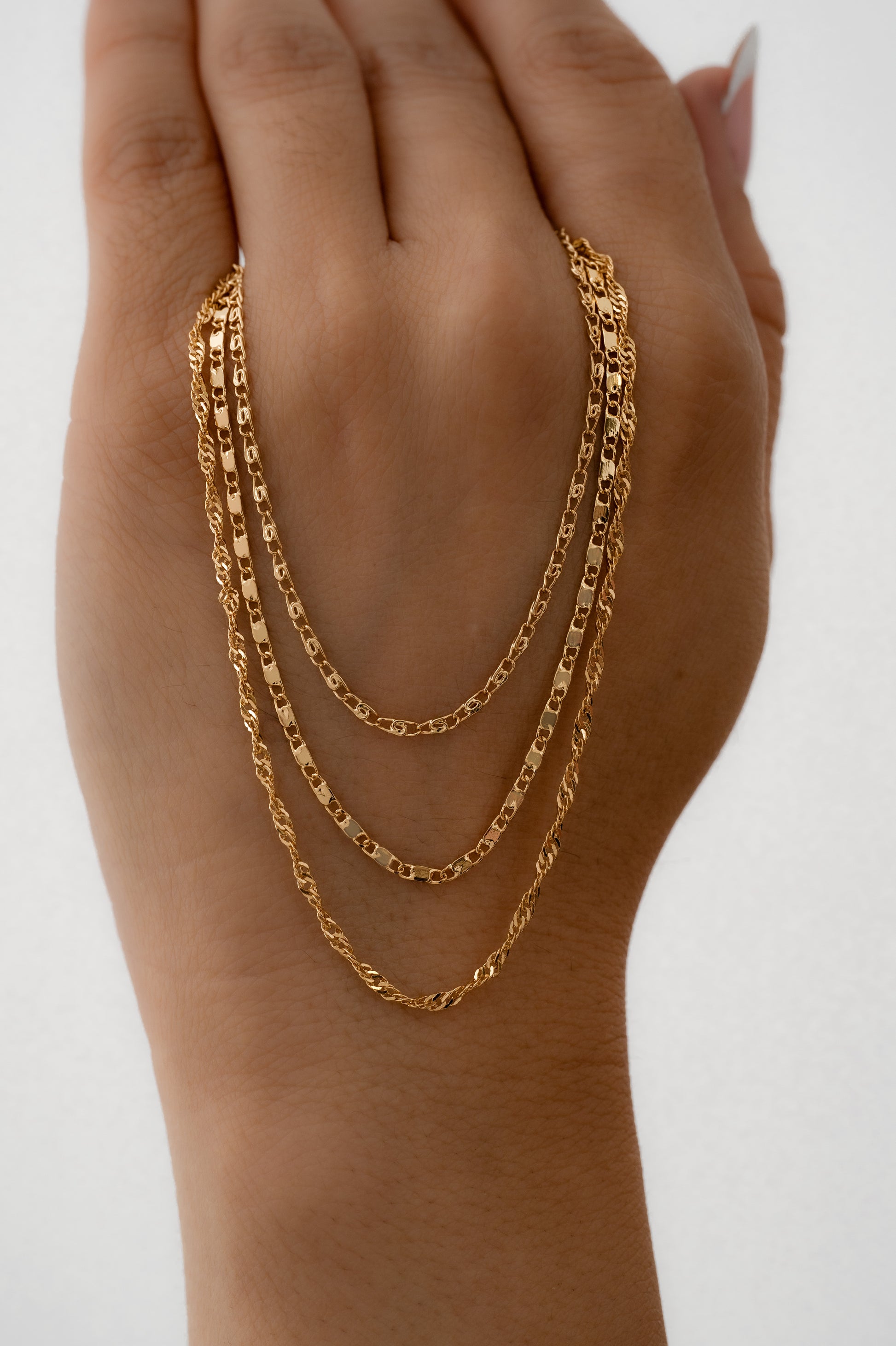 La cadena C Caracol con punteras de 45 cm en oro laminado de 18K se distingue por su diseño en espiral, que genera un destello llamativo y sofisticado. Su resistencia y acabado brillante la hacen perfecta para usar como pieza principal o como base ideal para dijes que reflejen tu personalidad.✨