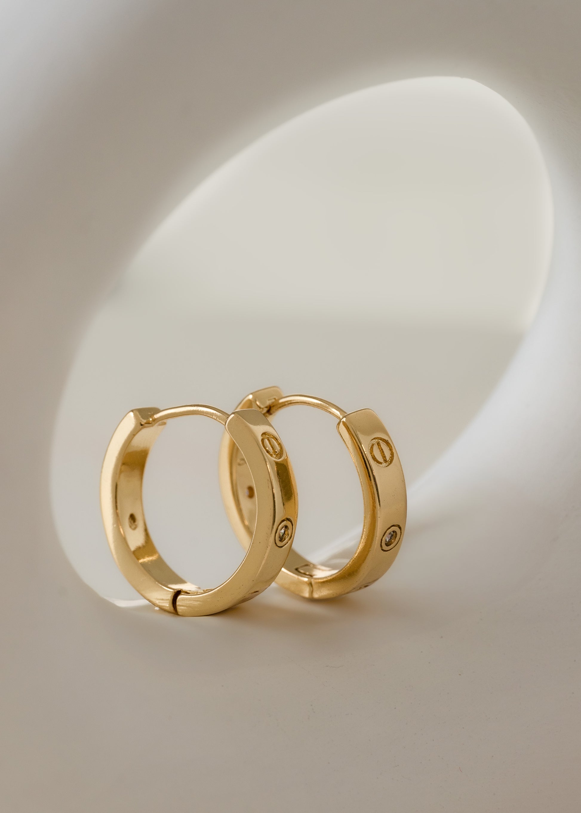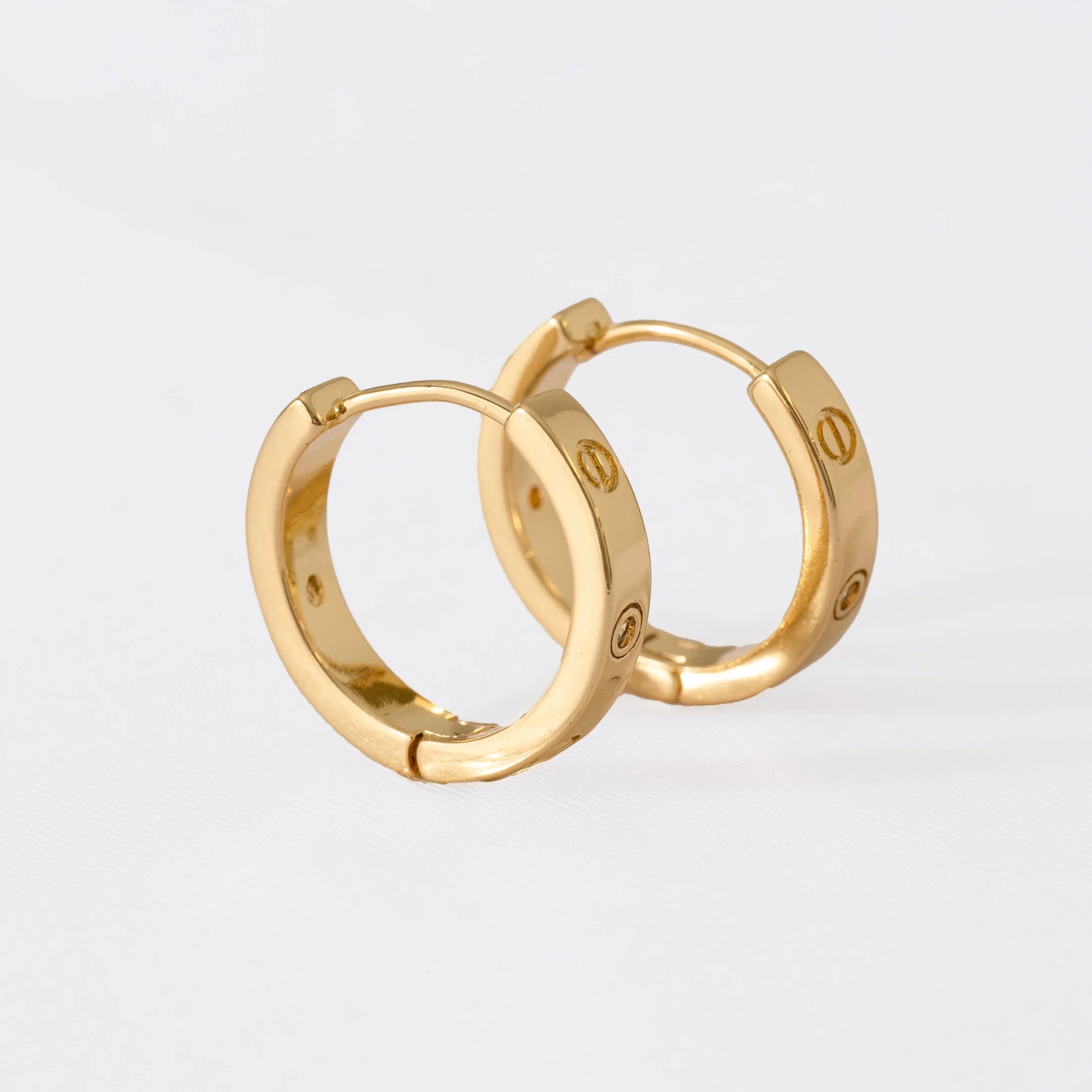 Aros de oro laminado de 18K con un diseño sofisticado y atemporal. Su acabado pulido resalta la silueta redondeada, decorada con delicados detalles grabados que evocan un estilo moderno y elegante. Una pieza versátil que combina perfectamente con looks casuales o de ocasión especial ✨💛