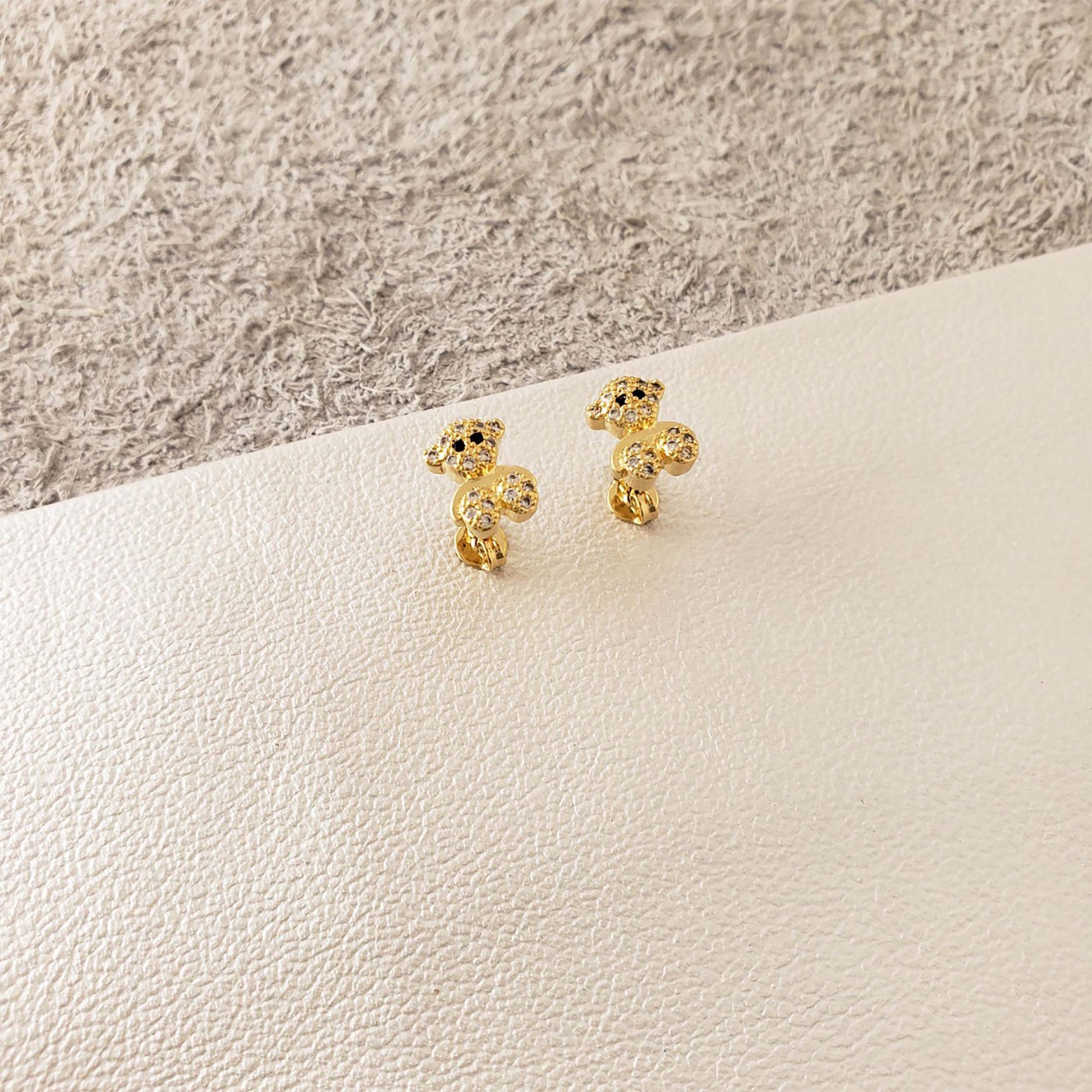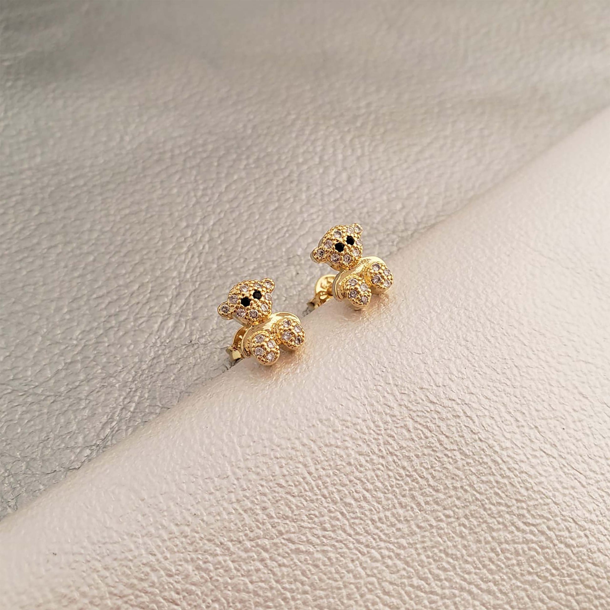 ✨ Pendientes de osito en oro laminado de 18k, adornados con circonitas brillantes que realzan su ternura y elegancia. Un diseño encantador que combina dulzura y sofisticación, ideal para regalar o darle un toque especial a tu estilo diario.