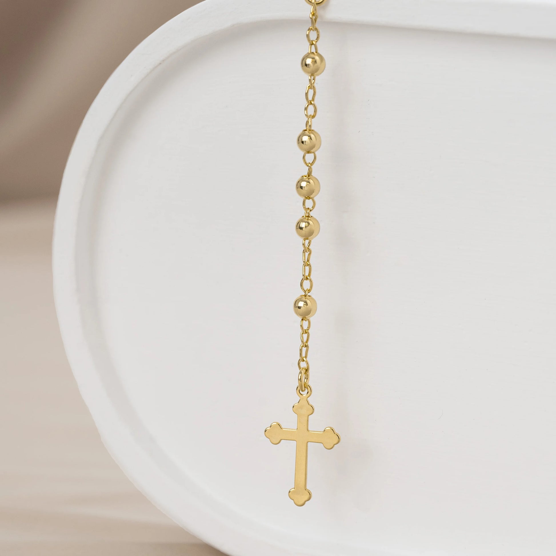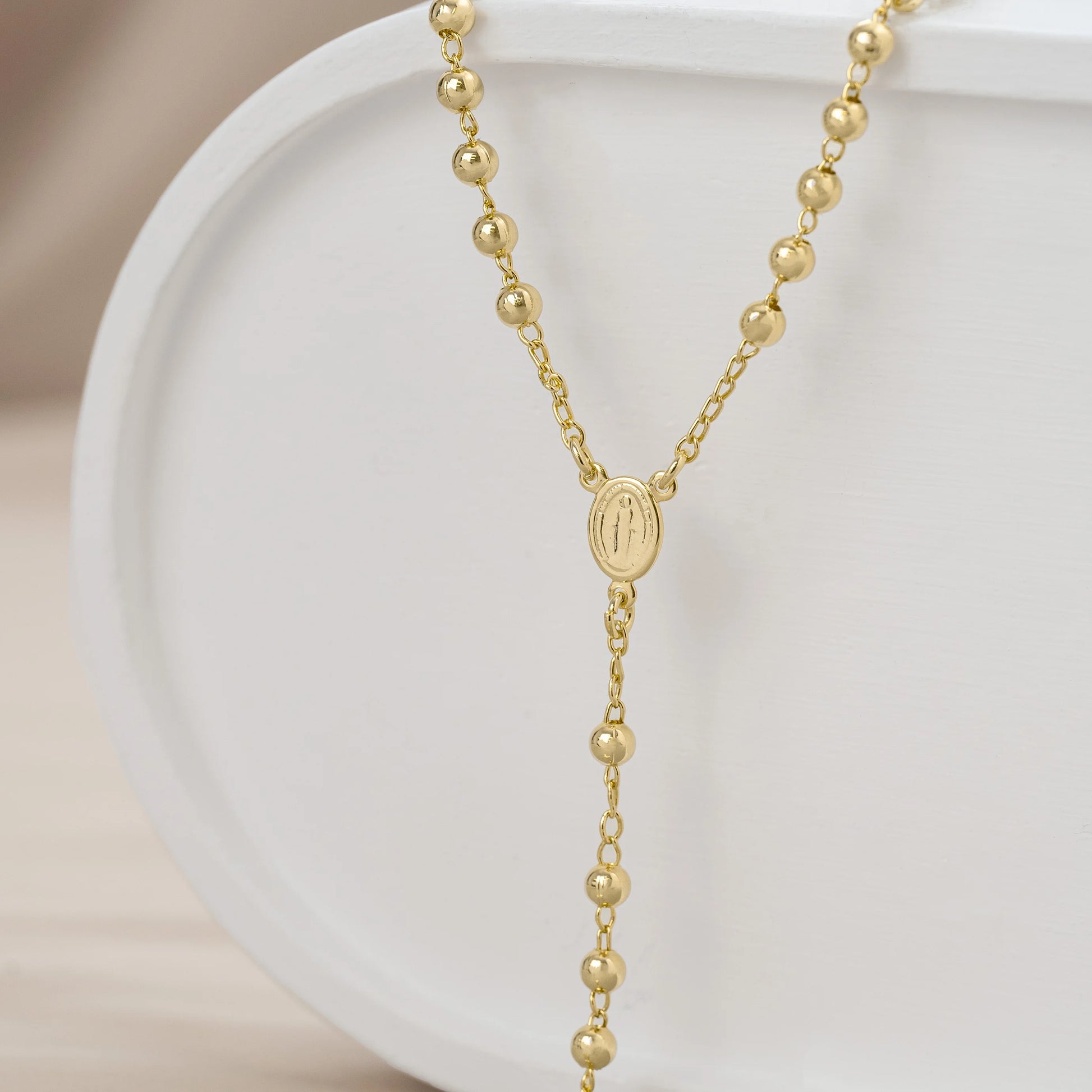 Un diseño clásico lleno de significado espiritual. Este rosario de 50 cm está elaborado en oro laminado de 18K, con cuentas lisas y brillantes que realzan su belleza. Incluye medalla central y cruz fina, perfectas para llevar con devoción o como un accesorio elegante con un toque simbólico. 🙏💛