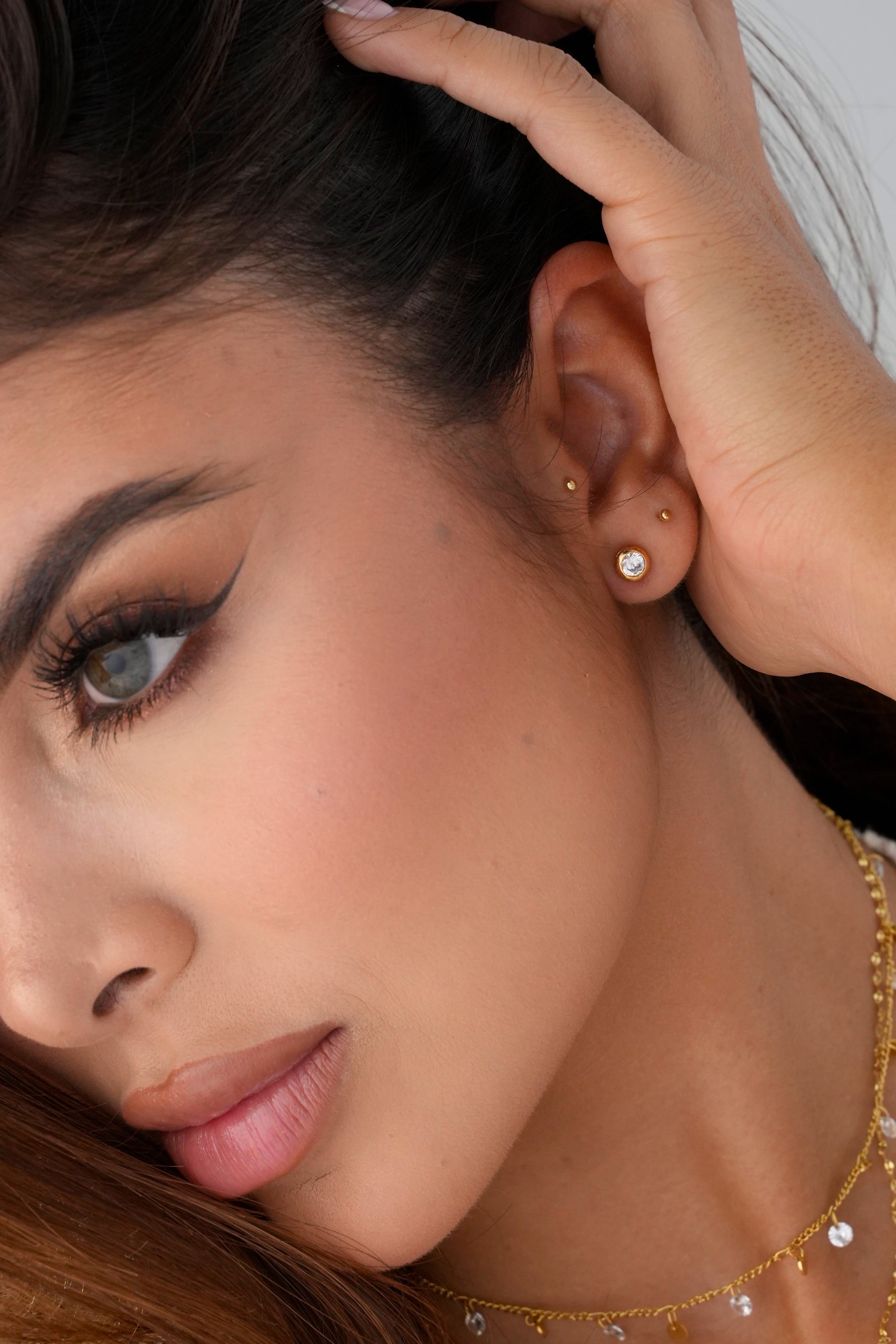 Estos topos de oro laminado de 18K con cristal de 5 mm son la combinación perfecta de sencillez y elegancia. Ligeros, versátiles y radiantes, se adaptan a tu día a día sin perder el toque especial que distingue una verdadera joya. 💎